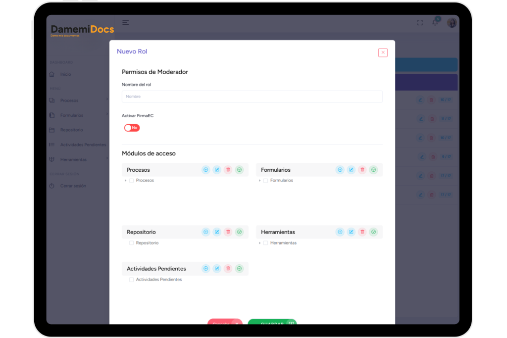 Asigna permisos por usuario, departamento o proyecto, controlando quién puede acceder o modificar documentos y permitiendo accesos temporales cuando sea necesario.